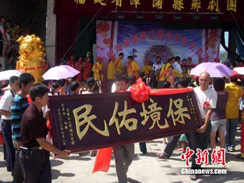 中新网漳州7月9日电(张文艺)台湾“三官大帝庙”寻根谒祖团90余人,8日到福建漳浦赤岭畲族乡认祖祭祖,进行相关民间民俗文化交流活动。