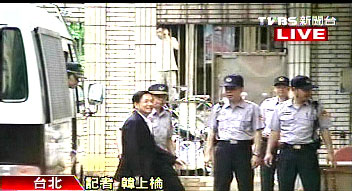 中新网7月19日电 据台湾TVBS电视台报道,陈水扁弊案二审宣判后,移至台湾“最高法院”,并于19日下午召开羁押庭决定是否续押陈水扁,据报道,19日下午3点多,陈水扁由看守所来到高院,下车时面露笑容,还向媒体点头致意;法官随后便是针对延押否,召开合议庭。