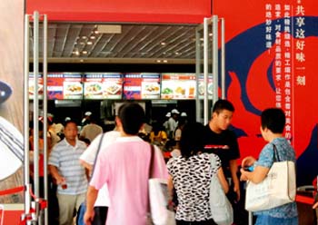 另一家台湾老董牛肉面,选择在世博的中华美食区开了第一家上海店,在美食区以平价取胜。董事长刘正雄说,每到用餐时间总大排长龙,显示牛肉面有市场,今年预计在上海开十家店。