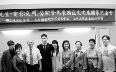 25日下午,马来西亚槟城孙中山基地纪念馆组团在台湾“国父纪念馆”举办电影《夜·明》公映。《夜·明》叙述孙中山在槟城宣扬革命的事迹,影片在槟城实景拍摄,由大陆、台湾、香港和马来西亚华人演员共同演出。1906年至1911年,孙中山曾5度到马来西亚槟城,历经艰辛寻求当地民众支持他策动黄花岗起义。图为《夜·明》公映记者会上嘉宾合影。(记者 徐蕾)