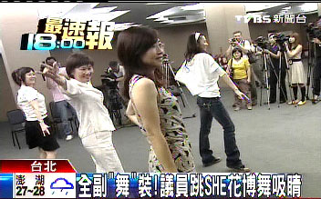 当天下午,台北市女议员脱下厚重套装,换上轻便服,绑起马尾,在台北市议会勤练舞步。她们平日问政很犀利,跳起舞来也很认真。