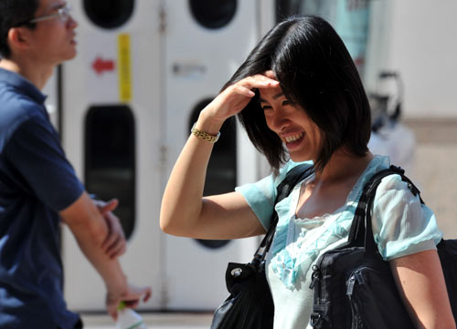 台湾2日高温炎热,台北市中午出现摄氏38.1度高温,民众走在马路上难招架。