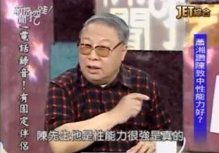 萧湘居士在节目中谈到,一般说法鼻子大代表性能力强,其实以中医观点看来,要看性能力好坏与否重点在下巴。他说,下巴属水、额头属火,水系统包括泌尿、生殖,恰巧陈致中下巴“又厚又长”,所以性能力好。