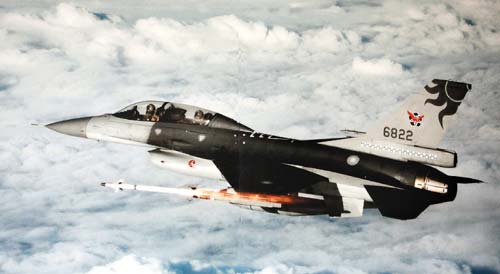 中新网8月5日电 据台湾《联合报》报道,台湾空军花莲基地两架F16战机日前演习射击鱼叉飞弹。