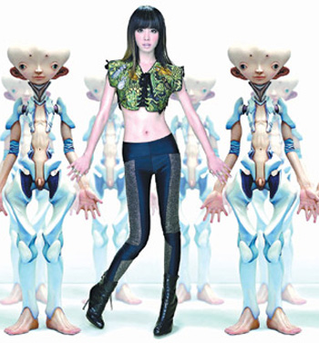曾为LV设计畅销包款的村上隆,这次与时尚杂志跨界合作,蔡依林拍摄封面时悠游于村上隆的“立体球”、“迷彩风”与“未来机器人”作品,宛如现代版走进奇幻世界的艾丽斯,视觉效果非常出色。