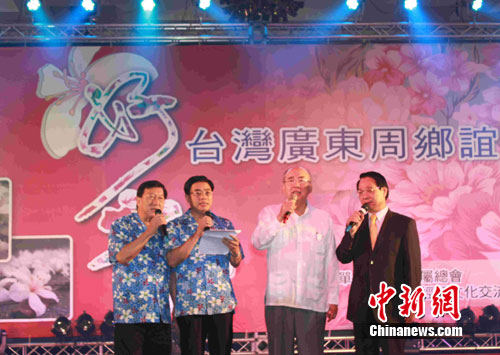 中新社新竹8月18日电 (记者 张传熙)两岸一家亲,客家情亦浓。广东省省长黄华华、中国国民党荣誉主席吴伯雄18日晚在台湾客属聚居地——新竹县联袂登台献唱。他们高歌一曲《客家本色》,受到出席晚宴的数百名当地乡亲和嘉宾的热烈鼓掌与喝彩。