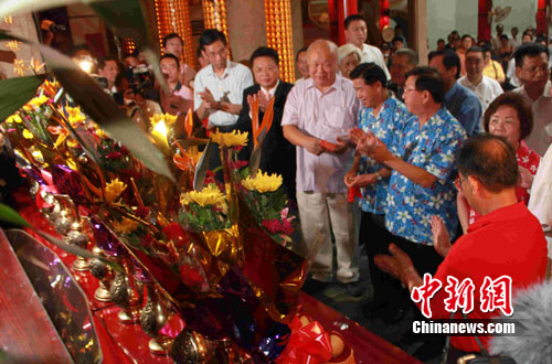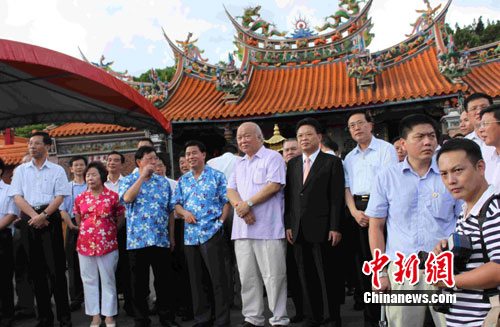 中新网新竹8月18日电(记者 张传熙)率领广东省经贸文化交流团访台的黄华华省长今天下午从台北抵达新竹县展开寻亲、访友的“乡情之旅”。下午,在新竹县领导人邱镜淳及众多乡亲的陪同下,黄华华到当地代表客家文化的义民庙行礼、祭拜。