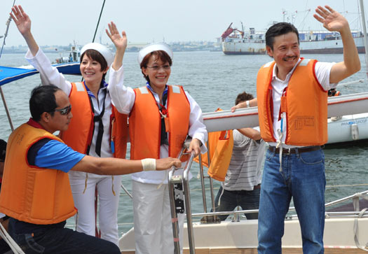 金溥聪与国民党高雄市议员、里长参选人及大批支持者到场造势,展现大团结的气势。此外,金溥聪、黄昭顺母女还搭上“顺”字号帆船出航绕港,象征“高雄启航”。