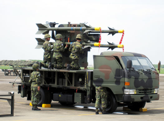 台湾空军防空501营第3连24日在空军嘉义基地,进行车载剑一防空飞弹人力上弹操演。图片来源:“中央社”