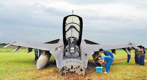 中新网8月30日电 据台湾《苹果日报》报道,2005年台军F-16战机失事报告日前曝光。当时由于跑道积水,这架载着台军陈姓少将的战机违规降落时冲向草坪,导致机身严重受损,维修费用逾800万新台币。有军官爆料说,这位陈姓少将之所以违规降落有雨的机场,只是为了取得飞行时数以领取每月数万元的飞行加给。