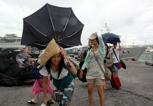 组图:台湾面临三台风夹击 民众“躲”台风