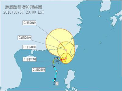 中新网9月1日电 据“中央社”报道,台“中央气象局”31日晚上发布2010年第6号台风“莱罗克”海上台风警报。1日清晨2时30分,再发布陆上警报,台湾西南部陆地及澎湖进入警戒范围。