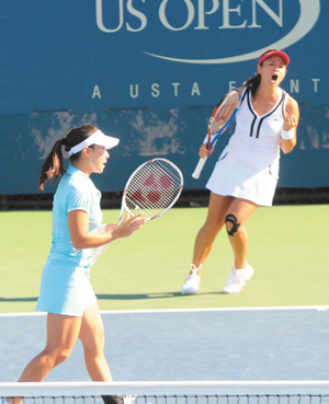 中新网9月9日电 台湾《联合报》今日报道说,“洁然配”的大陆郑洁及台湾詹咏然,昨天勇闯美国网球公开赛女双四强,追平两岸女双组合在大满贯赛最佳成绩,继续向前挺进。
