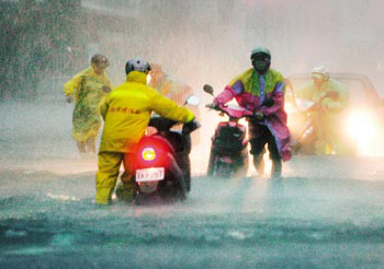 大高雄平地地区19日上午除了风势稍强外,雨量不大,许多民众还笑称“赚到一天台风假”;没想到下午风云变色,下午2时起,突然降下每小时超过100毫米的超大豪雨,高雄市三民、左营、楠梓区及高县仁武、大社、桥头、美浓等乡镇都遭遇暴雨袭击。