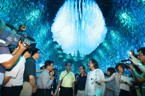 花博总体检顾问团25日访视梦想馆,了解馆内设施和动线规划。 图片来源:“中央社”
