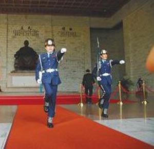 中新网9月26日电 综合台湾媒体报道,在台湾中山纪念馆、“中正纪念堂”、慈湖、头寮等处担任礼兵的台湾三军仪队,向来是游客猎取镜头的重点。以往各景点的仪队是采取“三军混编”,但从上个月起,改为同一景点由单一仪队驻守,每四个月交换一次。