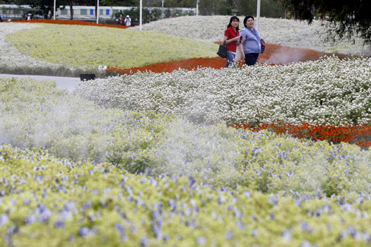 台北花博9日展开为期 20天、4 阶段测试,开放上千名测试志工进入圆山公园区,一睹园区内的壮观花海。图片来源:“中央社”