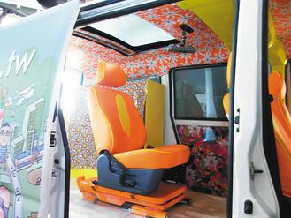 苏嘉全的“itoro号”,外观绘出大台中建设、景点,特别强化喇叭及音响的功率,车顶也开了天窗,天窗下方安装一个电动升降椅,让苏嘉全可以“坐着”,上半身探出车顶向选民挥手。