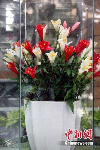 台北花博“未来馆”13日首度对媒体曝光。被形容为“长生不老花”的永生花在内的高新技术手段,令人目不暇接。人工处置后的永生花,花朵不会褪色,花瓣不易碎裂,色泽触感宛如鲜花,保存得当甚至可维持十年以上。