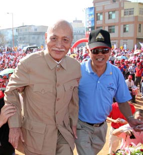 大台中市议员参选人今天纷纷成立竞选总部,国民党的市长参选人胡志强及民进党的市长参选人苏嘉全,都应邀担任同党籍议员参选人成立竞选总部的贵宾,让两人紧凑赶场,满足大家的需求,也有效拉抬竞选总部的热闹程度。