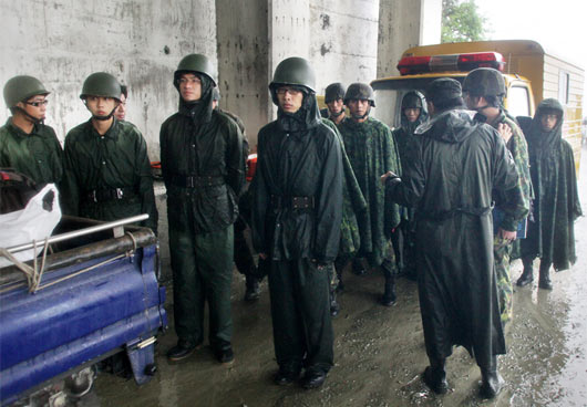 梅姬台风的强风豪雨让苏花公路柔肠寸断,台方全力抢通道路救援受困民众,台军官兵在一旁待命随时出动。