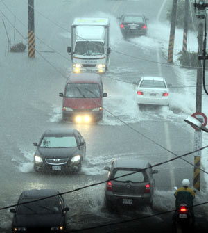 到梅姬台风外围环流影响,宜兰县昨天豪雨不断,罗东交流道下淹水严重。