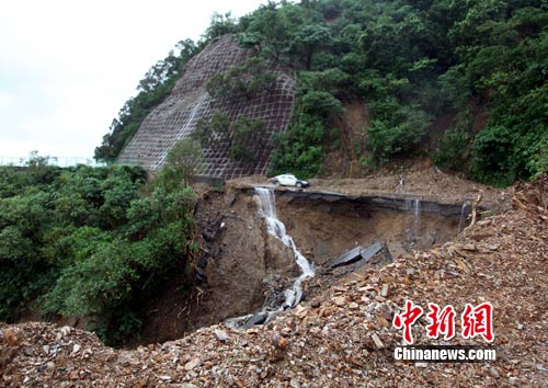 10月22日,21日受台风和豪雨重创的苏花公路,崩塌后的险处只一车可通,救援车辆还得从此经过。 作 者:陈立宇