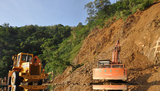 苏花公路106公里处25日凌晨又坍塌,工程人员出动1部推土机与2辆挖土机挖掘,在早上7时30分许紧急抢通。