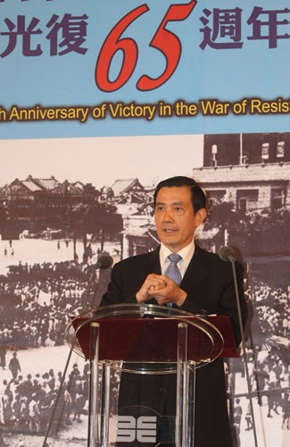 此外,马英九说,纪念抗战胜利65周年,目的是希望大家能以台湾为荣,并指出,大家不要只是记得战争的仇恨,而应以和平为最主要的力量。日前台北松山与日本羽田机场即将对飞,希望人民能永远生活在和平繁荣境界。