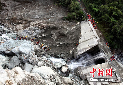 10月25日,在台湾苏花公路上寻找失踪大陆游客的搜救工作已进入第四天。图为台湾的搜救队在斜坡度角度达百分之七十五的宽阔溪谷中进行大面积搜索。作 者:陈立宇