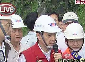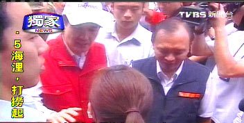 台湾“鲇鱼”带来豪雨重创宜兰,当地居民灾后忙着清理家园,马英九及台“行政院长”吴敦义23日前去勘灾,因车队动用警力以及交通管制,引发一些民众不满。