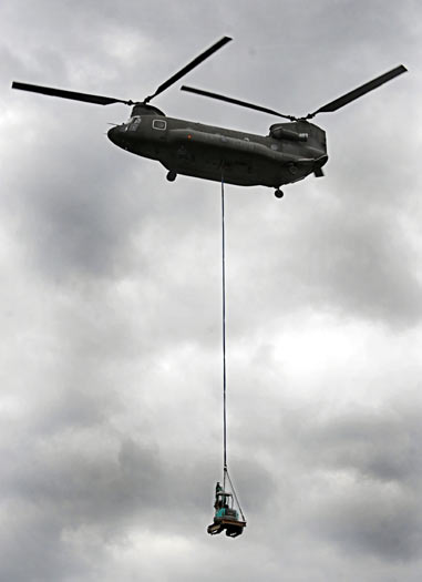 组图:台军直升机吊挂推土机赴坍方公路救援(2)