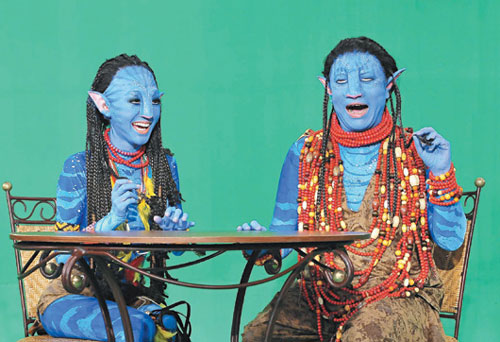 小S(左)和蔡康永扮成电影《阿凡达》中的“纳美人”,模样十分搞笑。图片来源:台湾《联合报》