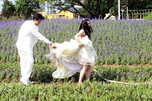 台湾“甜蜜新人拍婚纱迎花博”记者会1日在花博圆山园区举行,花博总部推荐十大婚纱景点,欢迎新人入园拍摄美丽的婚纱照。 图片来源:“中央社”