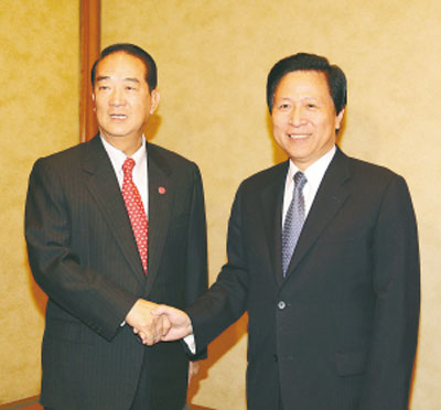 11月1日晚,中共江苏省委书记、省人大常委会主任梁保华在南京金陵饭店会见了亲民党主席宋楚瑜和副主席张昭雄一行。中共江苏省委副书记、省长罗志军,海峡两岸关系协会常务副会长李炳才,中共江苏省委常委、南京市委书记朱善璐一同参加会见。