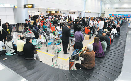 中新网11月4日电 据台湾“今日新闻网”报道,台湾桃园机场二航厦在3日下午5时30分,部分区域失去电力,导致旅客在漆黑的通道及候机楼行走,行李输送带也因断电无法运作,大批旅客在转盘旁枯等行李近一小时,一名台湾旅客直说让人看到这种情况实在是太丢脸了。