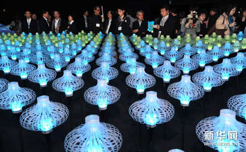 11月3日,观众在台北花博会“梦想馆”参观“花械花开”机械花朵。 新华社 发 吴景腾 摄