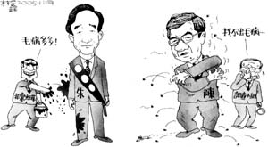民进党选举时攻击对手惯用三招,一是“抹红”,攻击对手“亲共”、“通共”,但今年随着连宋郁等三位主席相继访问大陆,岛内民众对中国共产党有了全新的认识,“戴红帽子”的攻击已经失效;二是“抹黑”,往对手身上泼脏水,攻击对手有“黑金”嫌疑;三是“抹黄”,攻击对手生活作风有问题,从对手的人格人品上给予破坏。