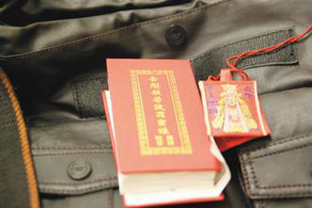 据报道,新竹市警第一分局6日逮到“嘴念经,手偷钱”的张家诚(34岁)时,发现他随身携带的金刚经破掉了,他说是前几天不小心弄破的。警方认为张姓嫌犯实在犯案累累,“连神明都不保佑了”。