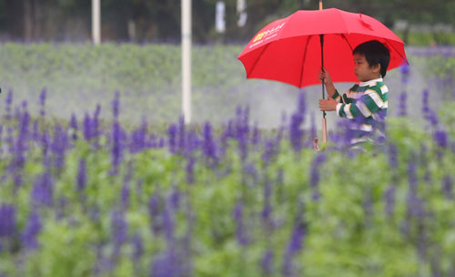 台北"立冬"雨濛濛 民众雨中徜徉花博花海(组图)