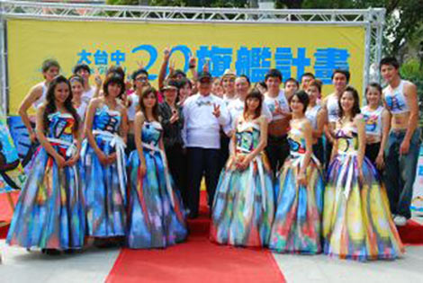 中新网11月10日电 据台湾“中广新闻”报道,国民党台中市长参选人胡志强,10日在台中公园湖心亭畔,以展秀方式,发表二十大旗舰计划,宣示要为大台中开创美好未来。特别的是,这些计划透过设计师巧手,化成美丽画作,还拓印成秀服,在激烈的选战中,多了一点创意与艺文味,相当吸睛。