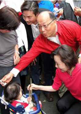 中新网11月11日电 据“中央社”报道,国民党台中市长候选人胡志强11日起请假投入选举,首场活动即到台中市北屯区金谷市场拜票,国民党秘书长金溥聪特别陪同,市场内“冻蒜(当选)”声不绝于耳。