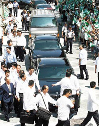 但在2010年9月,台湾修正“卸任正副领导人礼遇条例”后,只要卸任者涉贪一审被判有罪者,即停止礼遇,三审判刑定谳后则停止随扈和车辆礼遇。因此在2010年10月,陈水扁每年享有的800万礼遇金已经遭到停发。