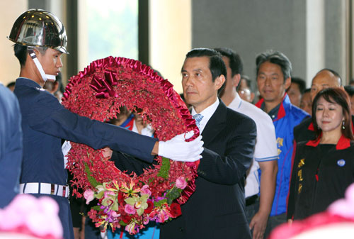 组图:孙中山诞辰日 国民党主席马英九献花致敬