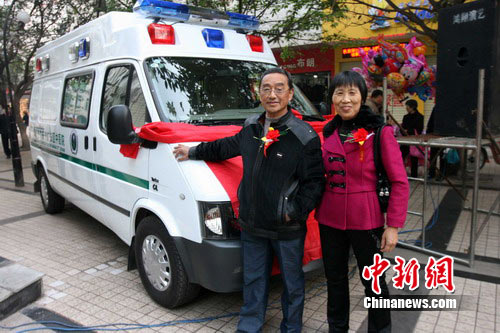 中新网广安11月12日电(廖小兵 彭良平)12日上午,台胞罗文璋向四川省广安市广安区人民医院捐赠救护车仪式举行,罗文璋的胞弟罗洪俊代表罗文璋向该院院长转交了捐赠牌匾。