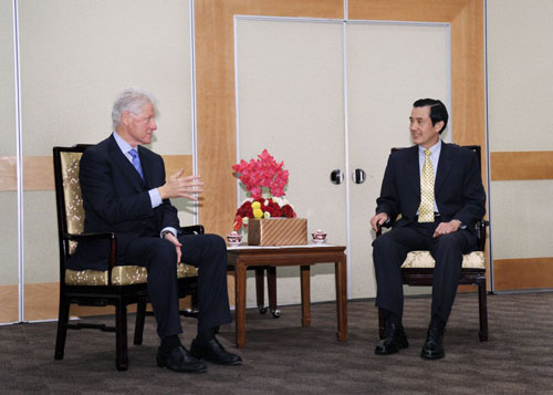 中新网11月15日电 据“中央社”报道,美国前总统克林顿14日抵达台湾,随即和马英九餐叙。据转述,克林顿在会谈中肯定台湾目前的两岸政策及ECFA,并对台湾的经济复苏表达佩服之意。