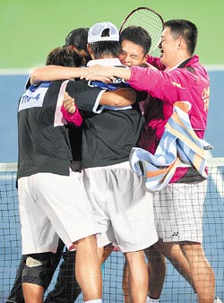拿下关键第二点单打的二十岁小子郭家玮哽咽地说说停停:“这场比赛之前,我差点崩溃了,我输了一些重要的比赛,是心理谘商老师庄艳惠帮了我,她告诉我‘有失败就会有成功’,我终于为大家赢了!”其实昨晚赛后,庄艳惠哭得更凶,哭得也痛快。