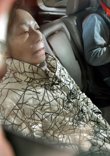 图为吴淑珍探扁后,坐在车内不发一语。