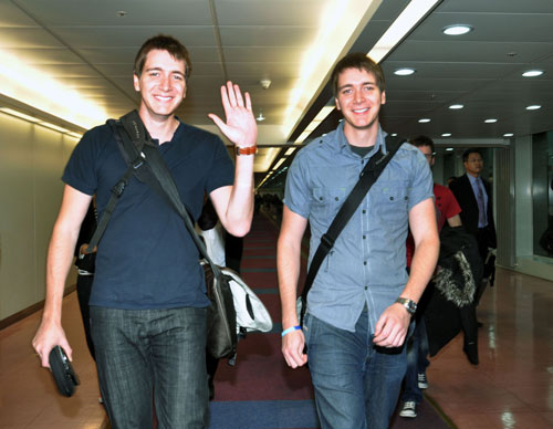 中新网11月15日电 据“中央社”报道,电影《哈利波特》系列首度有演员造访台湾,片中饰演荣恩双胞胎哥哥的詹姆斯与奥立佛·菲尔普斯15日抵台,他们亲切向大家问好,表示能到台湾很兴奋,不少粉丝热情接机。