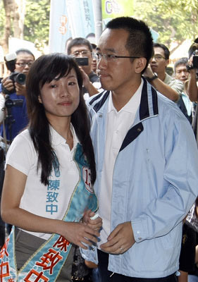 组图:被法官判定召妓 陈致中携妻召开记者会
